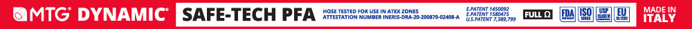 MTG DYNAMIC® SAFE-TECH is a multipurpose hose “Full Ohm”, designed for conveying cosmetic, pharmaceutical and highly flammable chemical products in working areas requiring utmost safety.