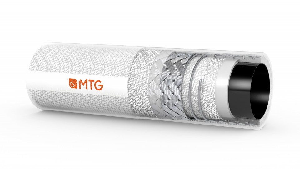 This hose has been designed for conveying pharmaceutical, food and cosmetic products.